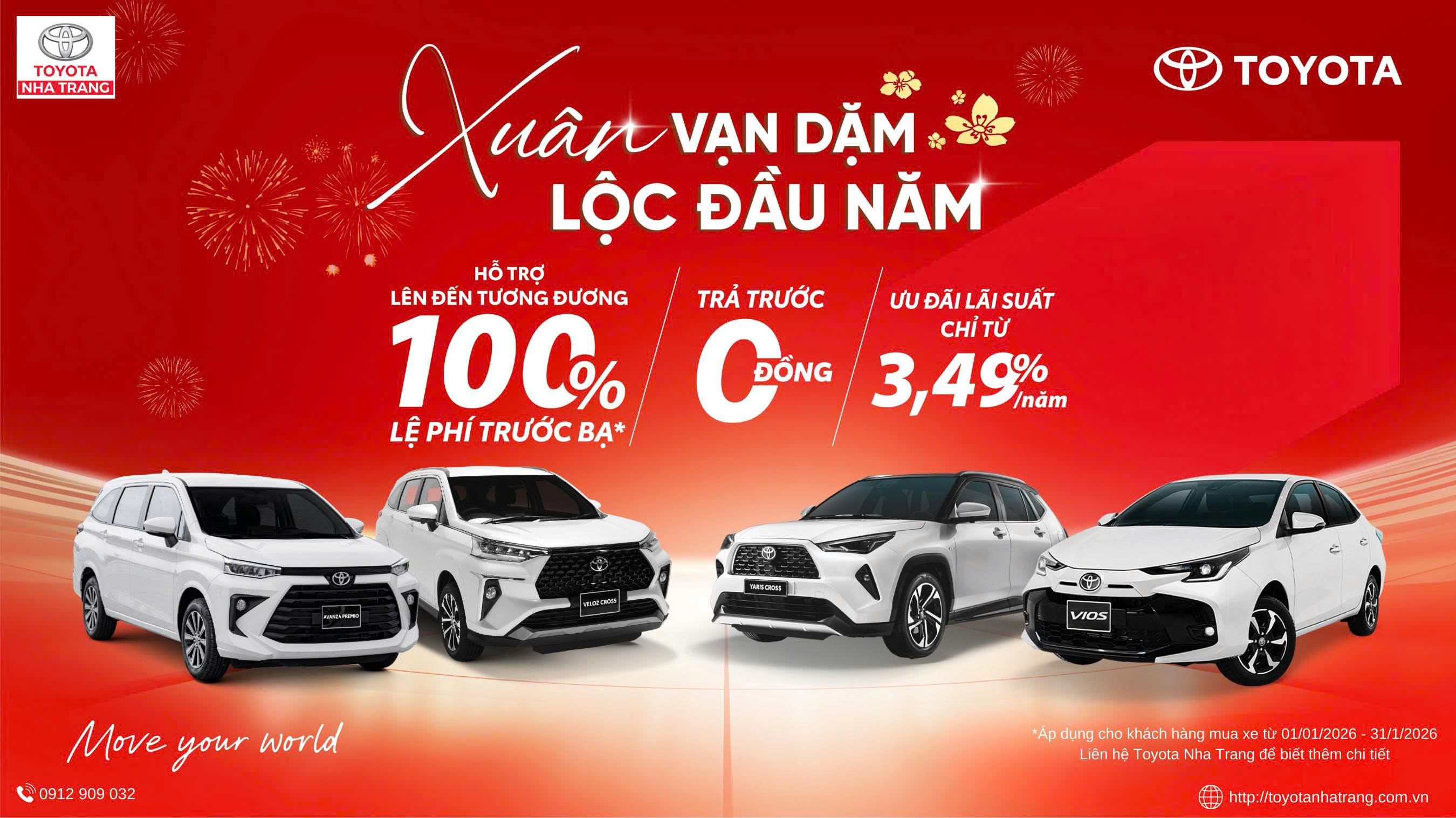 Toyota Nha Trang kính chúc Quý Khách hàng và Quý Đối tác một năm bình an – may mắn – thành công, mọi cung đường đều hanh thông, mọi dự định sớm thành hiện thực